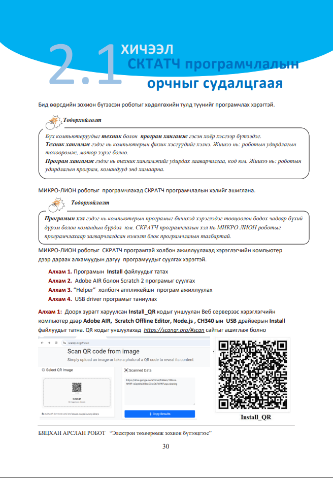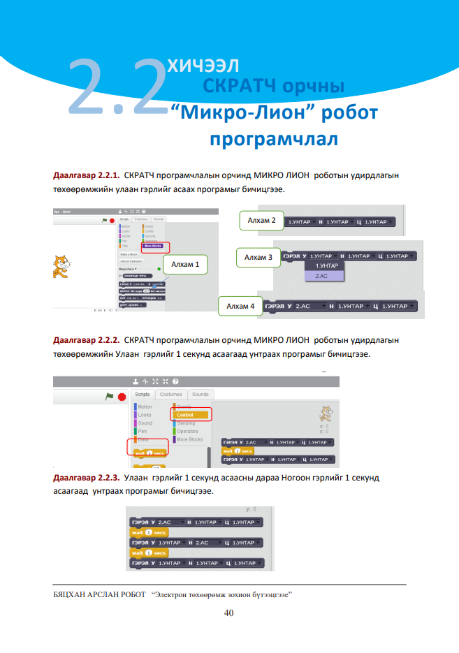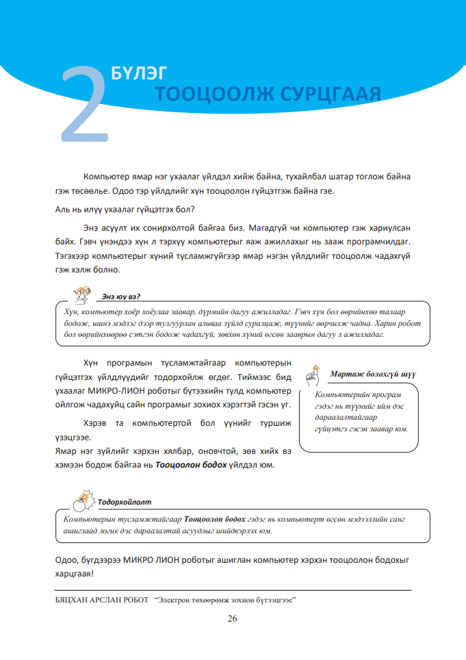 Микролион ашиглан код сурах нь үнэхээр амархан бас хөгжилтэй. Би том болоод мундаг инженер болно. Код бичих сурах зайлшгүй шаардлагатай. Ингэхдээ би микролионыг ашиглан код бичиж сурсан. Би энэхүү роботын бүрэн ажиллаж байгааг шалгадаг.