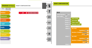 Open Roberta Sim E.V3 ийн PROGRAM NEPOprog талбар дахь SIM товчлуурыг