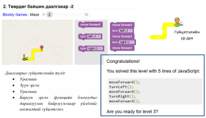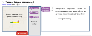 Бүгдээрээ нээлттэй сан бүхий https://blockly.games/maze?lang=en сайтын Blockly Games тоглоомыг тоглонгоо програм бичих аргад суралцацгаая.