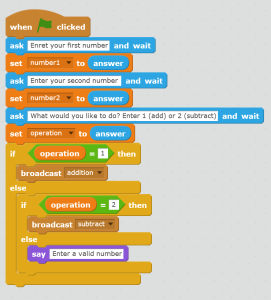 Доорх програмд дэд програм ашиглаагүй “Scratch тооны машин” програмын эхлэлийн кодыг харуулсан байна .